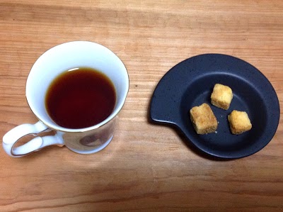 和菓子に、カップの紅茶が置いてあっても、ちょっと不思議な感じ。