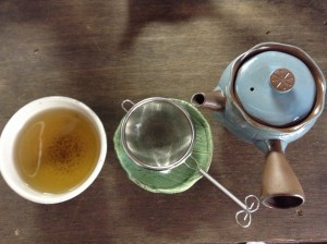 よかったら、古くて新しいほうろくで炒りたてほうじ茶をどうぞ。