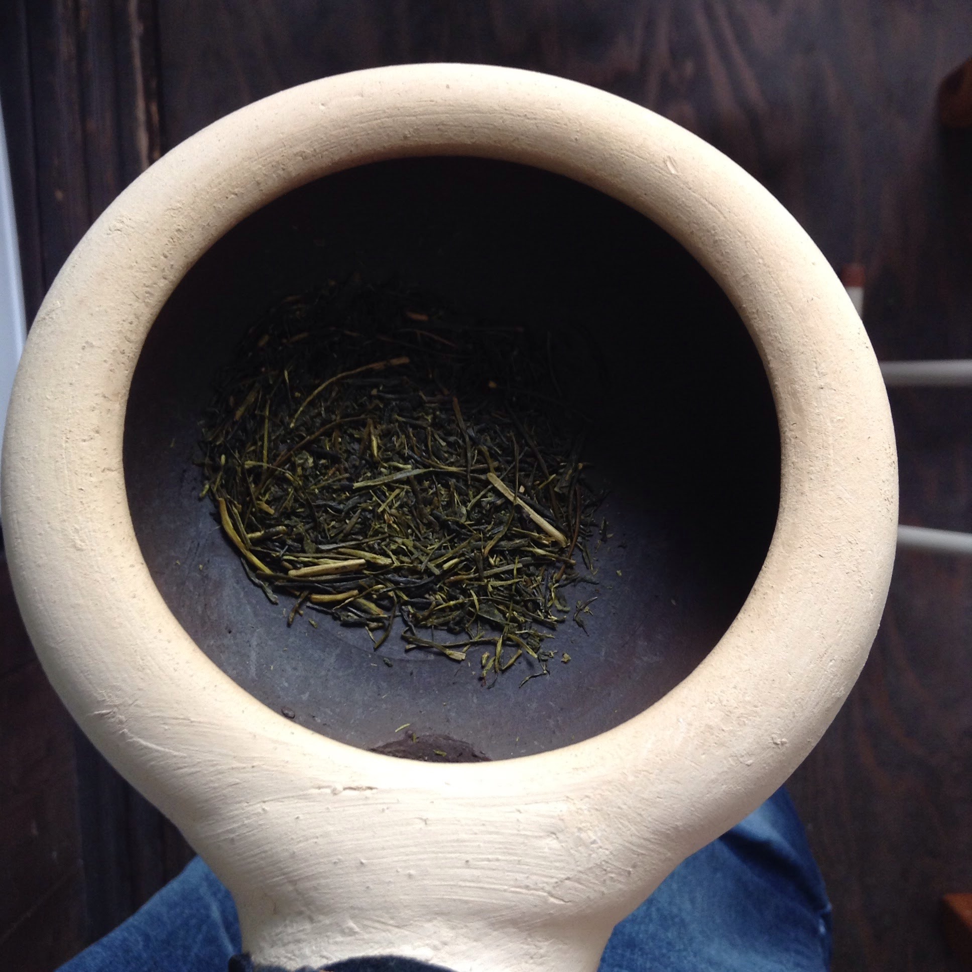 よかったら、古くて新しいほうろくで炒りたてほうじ茶をどうぞ。