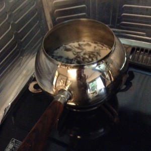 沸騰したお湯にお茶っ葉を入れて、少し煮出した後に、ミルクを入れて。