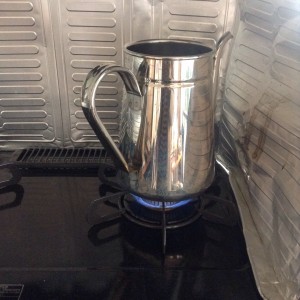 ぐつぐつの沸騰したお湯をポットに注ぎます。