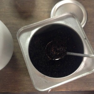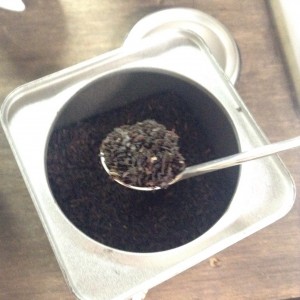 紅茶のお茶っ葉をティーメジャーで計りとります。
