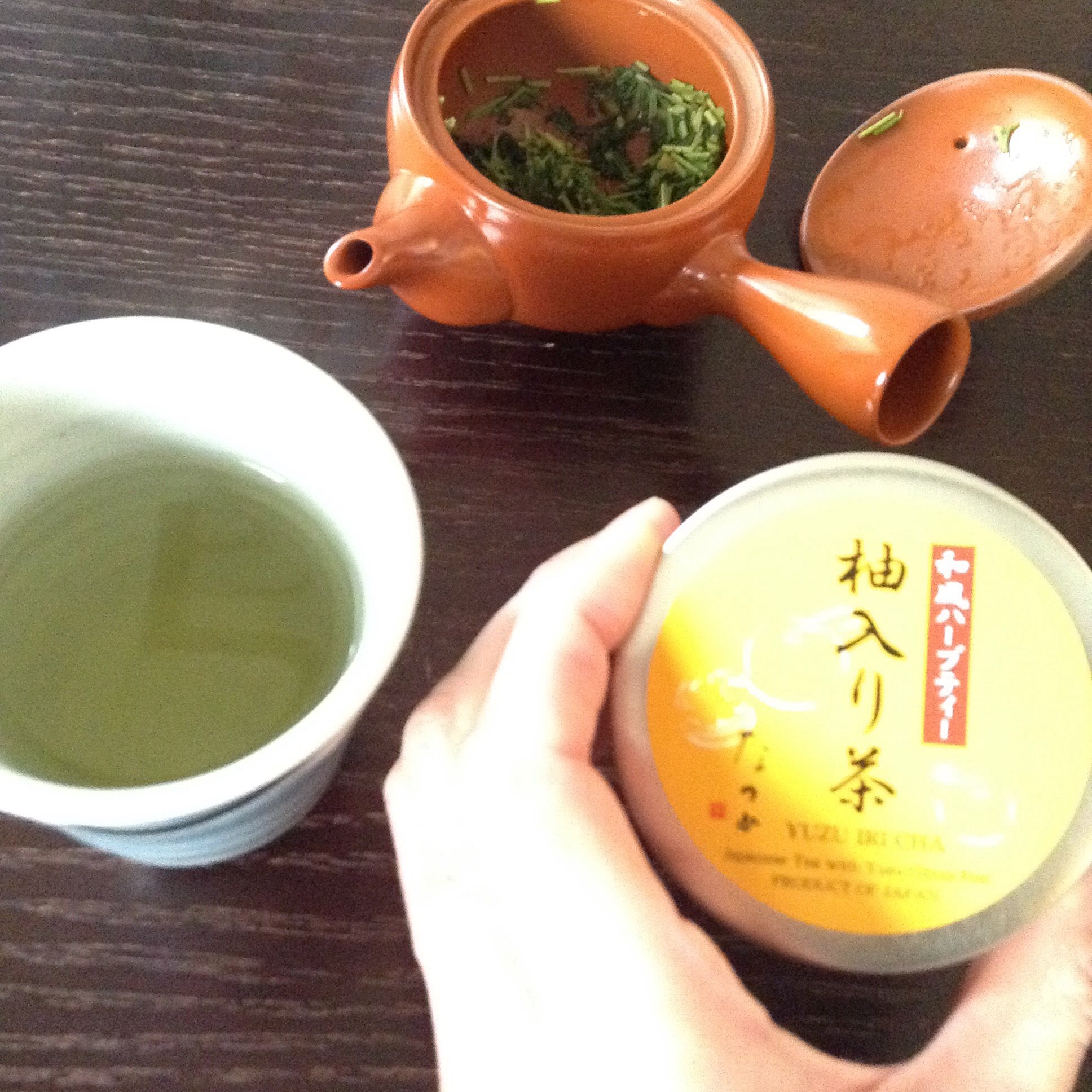 ゆず入りのかりがね煎茶は、すっきりしていて気分を変えてくれる。