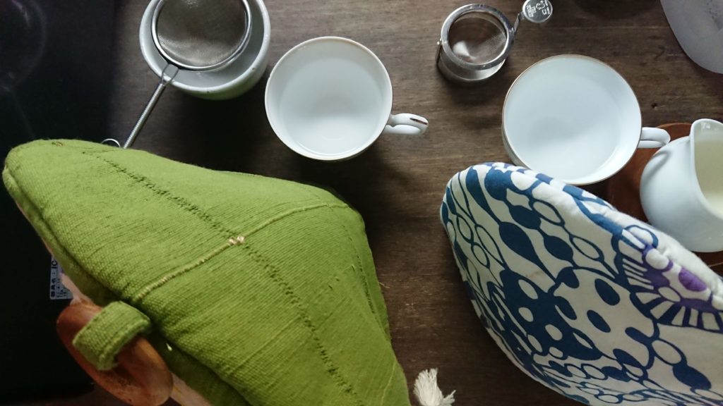 宝瓶は、熱湯を淹れてるので暑いので、手ぬぐいで自分の手を保護っ