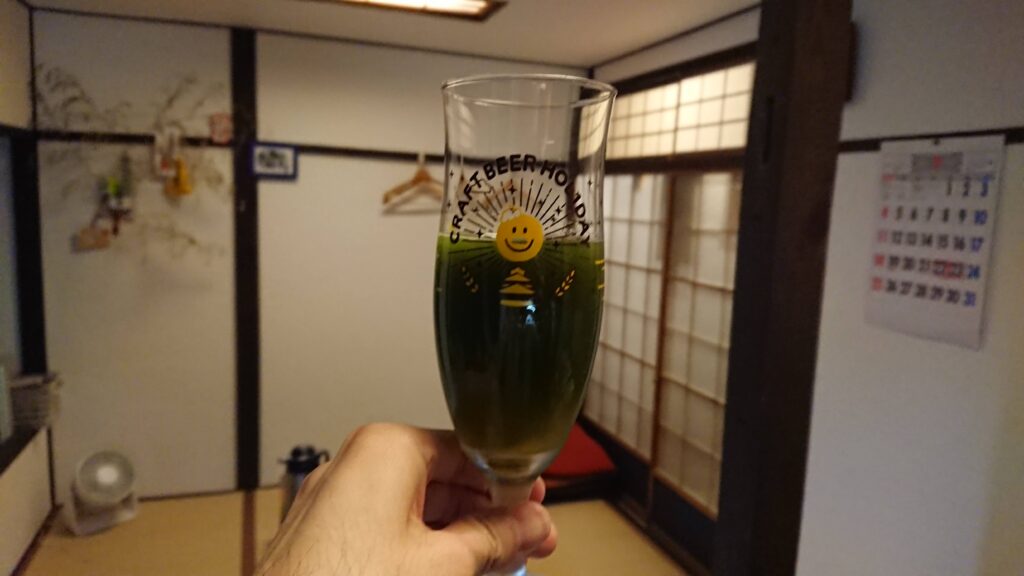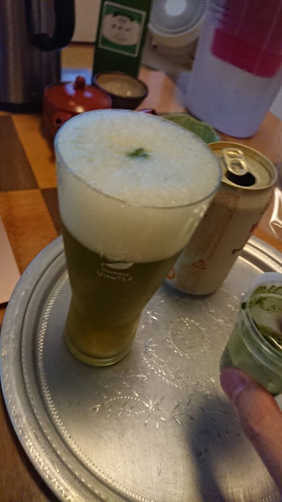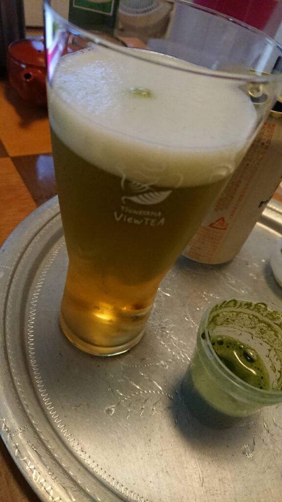 四万十源流茶のかぶせ茶パウダーの入った津野山ビールは、ビールの苦味がかぶせ茶でまろやかになり、飲み終わったとのあと口のお茶の軽い苦味がいい感じでした。