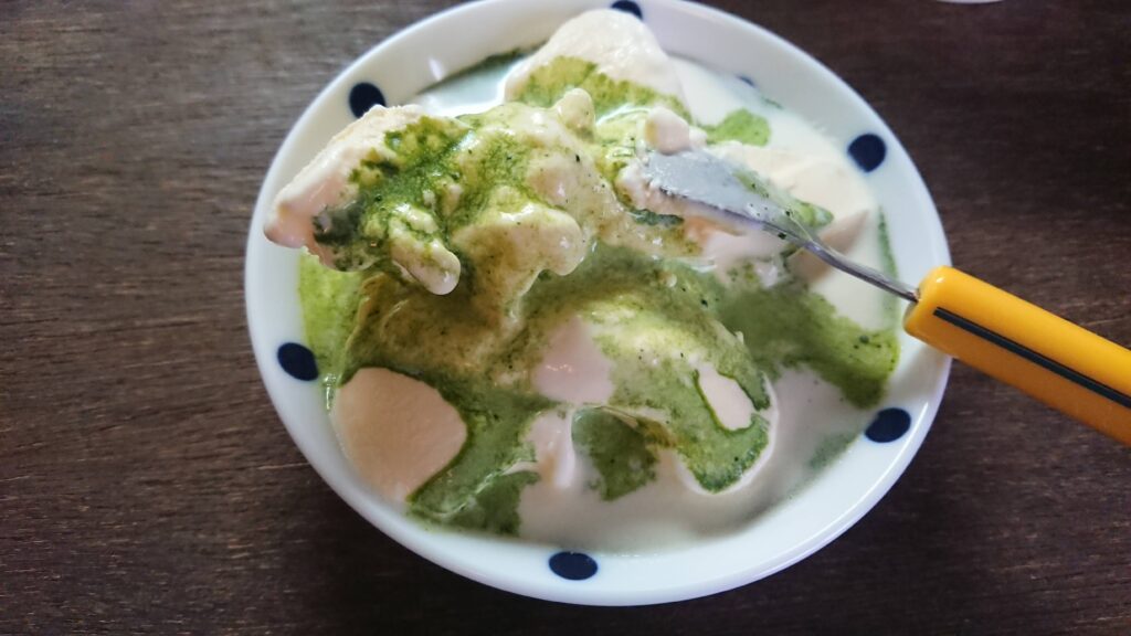 ひやしあめ+かぶせ茶パウダー、やってみました!