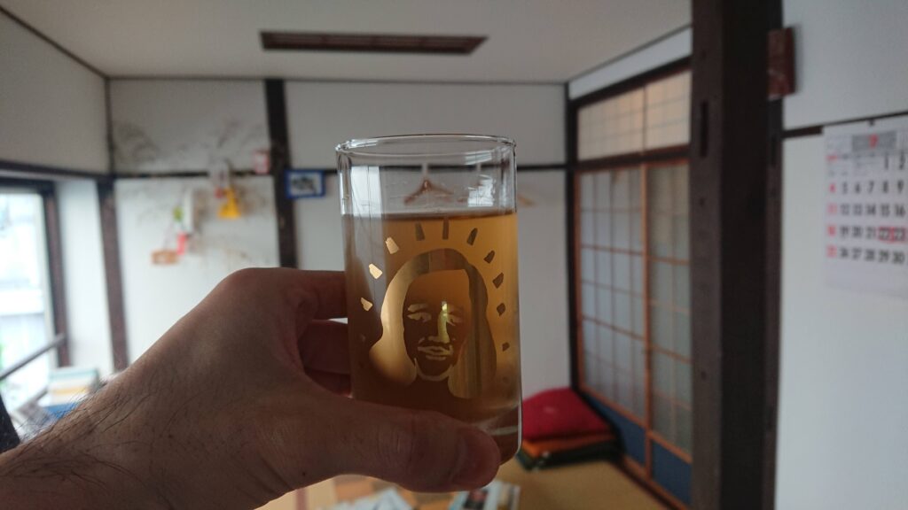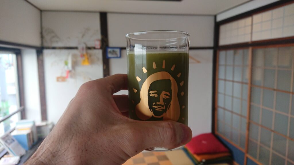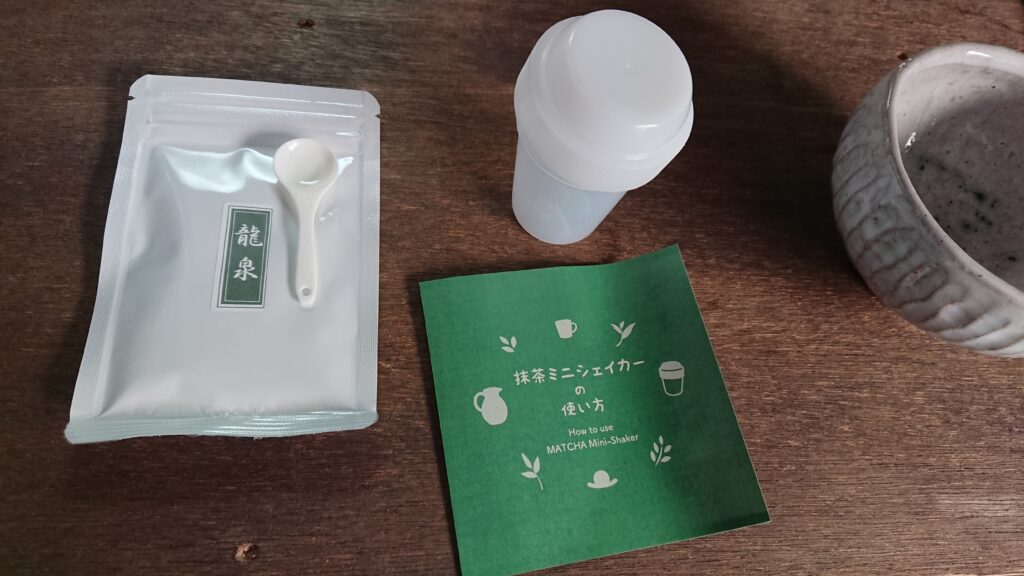 グラスに注いで、ちょいとずつミニシェーカーのお茶を垂らして、