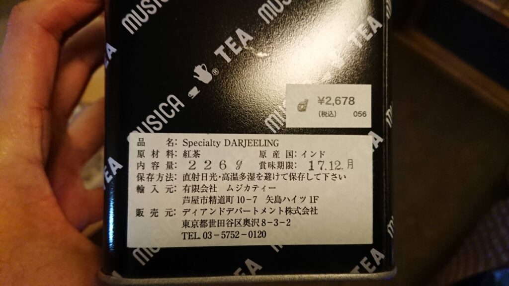 ムジカティーの紅茶の賞味期限は確か2年か3年だったはず。