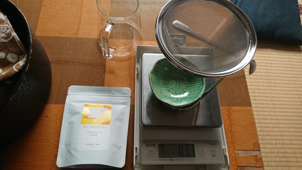マイドリップティーの玄米茶とお茶パックを用意して、