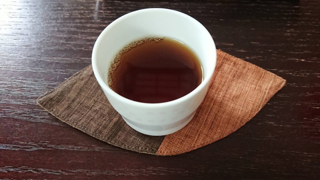 ペーパードリップで淹れた粉ほうじ茶を小さめのエスプレッソカップに注いでみると、
