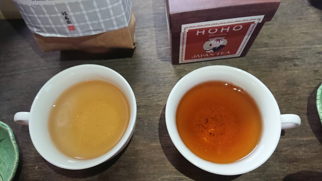 飲んだら、しっかり渋めの緑茶と、しっかりほうじ茶でした。