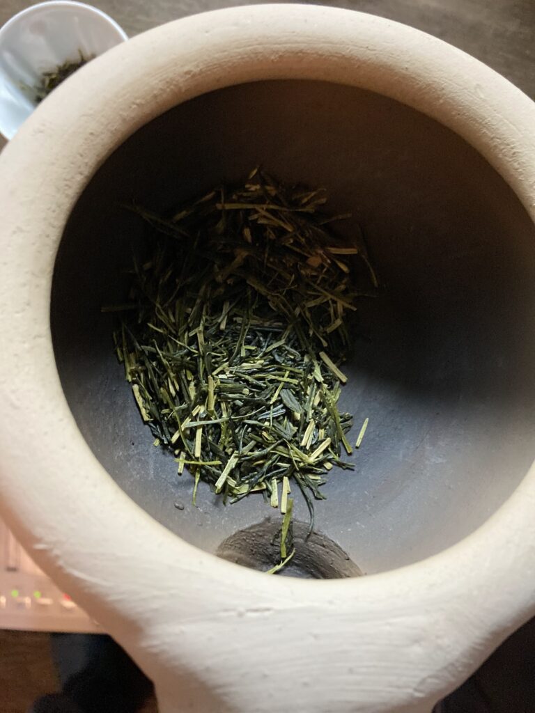実はお湯だしした後の茶殻が、液体のお茶より香りが良かったので、お湯出しの急須に水を入れて、お湯出しのあとの水出しをしたら、めちゃ香りが良いお茶になりました。